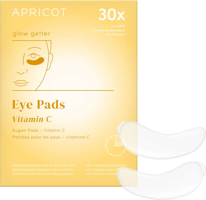 Deze anti-aging Vitamine C Eye Pads van APRICOT zijn gemaakt van siliconen van medische kwaliteit en kunnen tot 30 keer hergebruikt worden. Antioxidant vitamine C voedt de huid onder je ogen intensief en helpt fijne lijntjes glad te strijken. Je ogen zullen in een mum van tijd stralen.