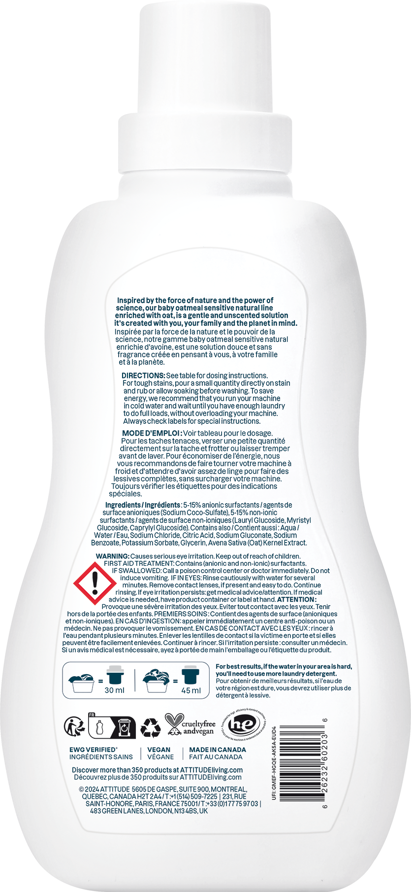 ATTITUDE Sensitive - Baby Vloeibaar Wasmiddel, 1 l