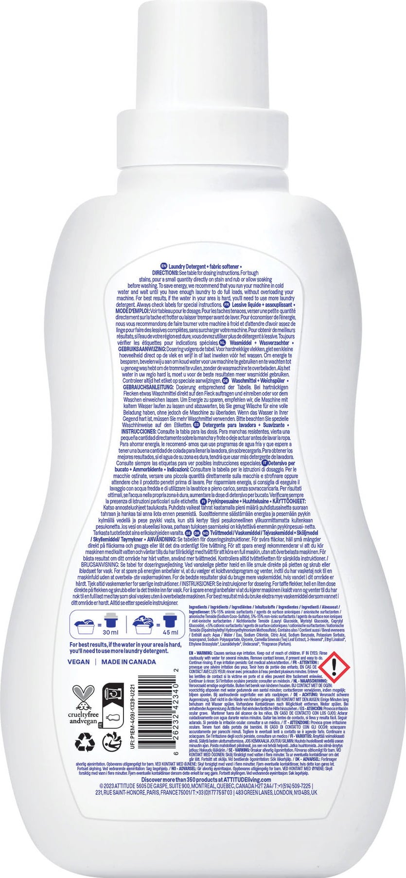 ATTITUDE Wasmiddel en Wasverzachter - Mountain Liquid , 1,05 l