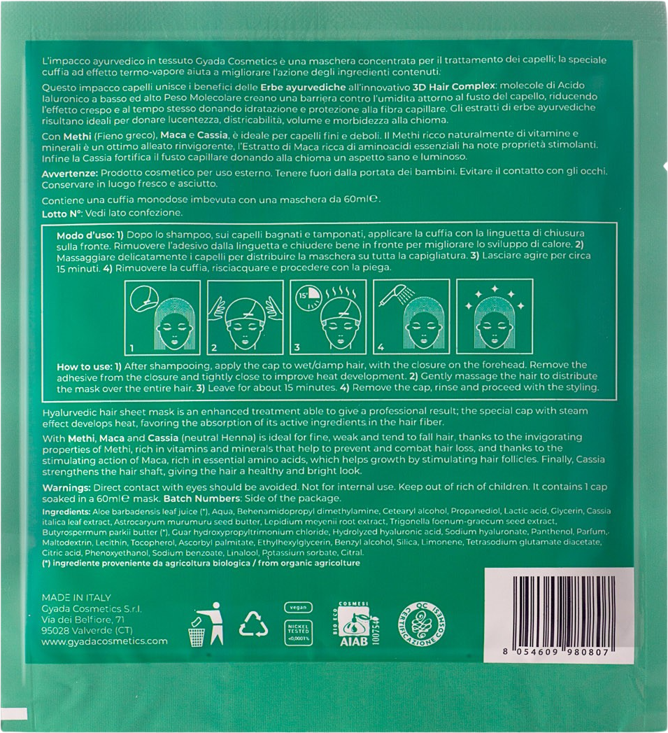 GYADA Cosmetics Hyalurvedic Versterkend Doekmasker voor het Haar, 60 ml