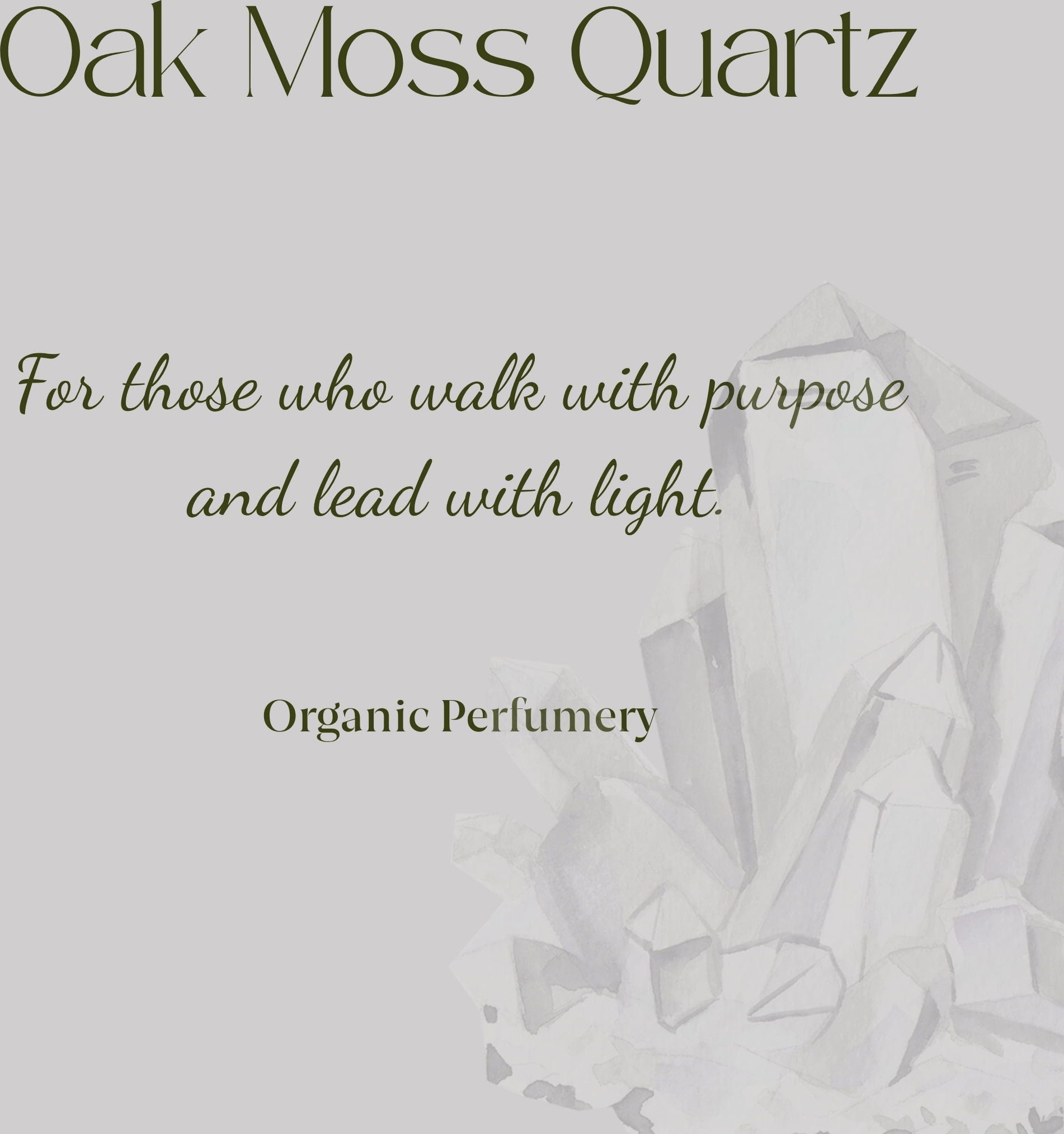 De Eikenmos Biologisch Kristallen Energieparfum is een geur met een nobele aanwezigheid en pure essentie. Deze combinatie van bloemen en mos, geïnspireerd door rookkwarts, straalt innerlijke kracht, soberheid en zuiverheid uit.