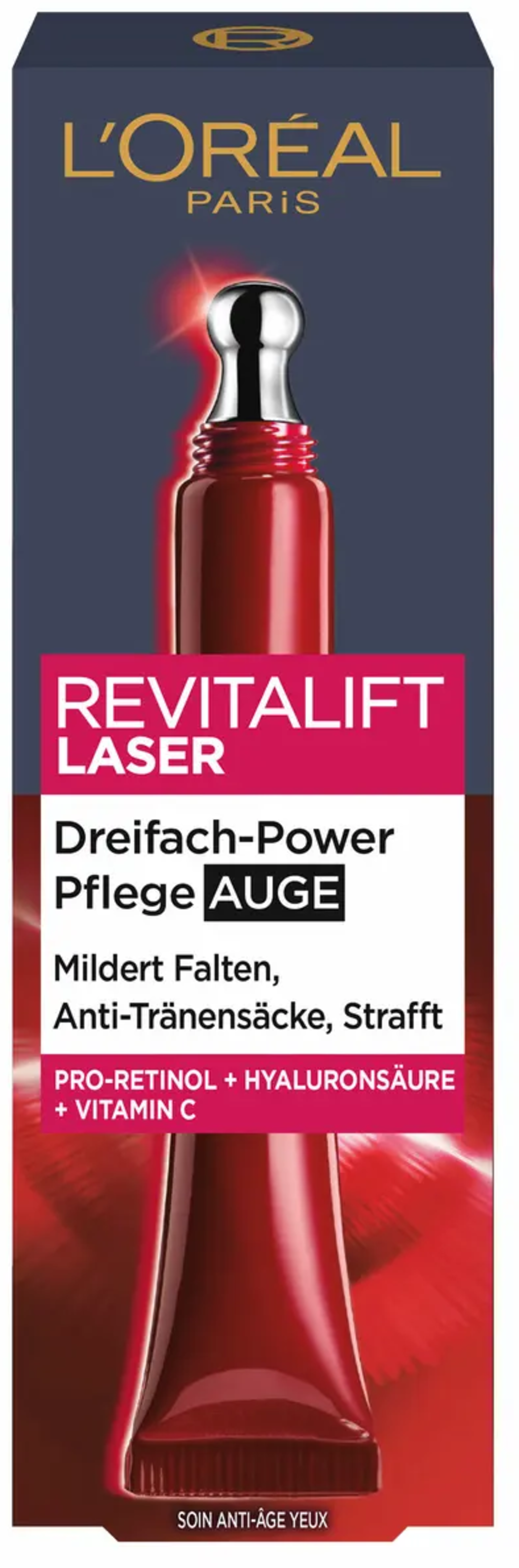 Deze anti-age oogverzorging uit de Revitalift Laser lijn van L'Oréal Paris is speciaal ontwikkeld voor de fijne, gevoelige huid rond de ogen. De rijke formule met drievoudige anti-age werking verzorgt de huid vanaf 30 jaar bij de eerste tekenen van veroudering.