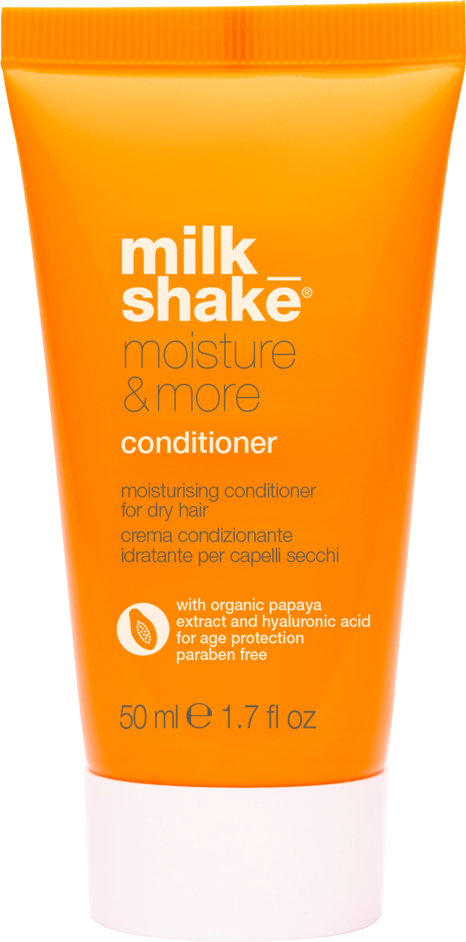 De Moisture & More Conditioner van milk_shake is speciaal ontwikkeld voor droog haar en helpt een optimaal vochtniveau te herstellen en te behouden. De rijke maar lichte formule combineert hyaluronzuur en papaja-extract om het haar intens te hydrateren en een glad haargevoel te ondersteunen. Tegelijkertijd maakt de conditioner het makkelijker om te kammen, zodat je haar makkelijker te ontwarren is en zacht valt.