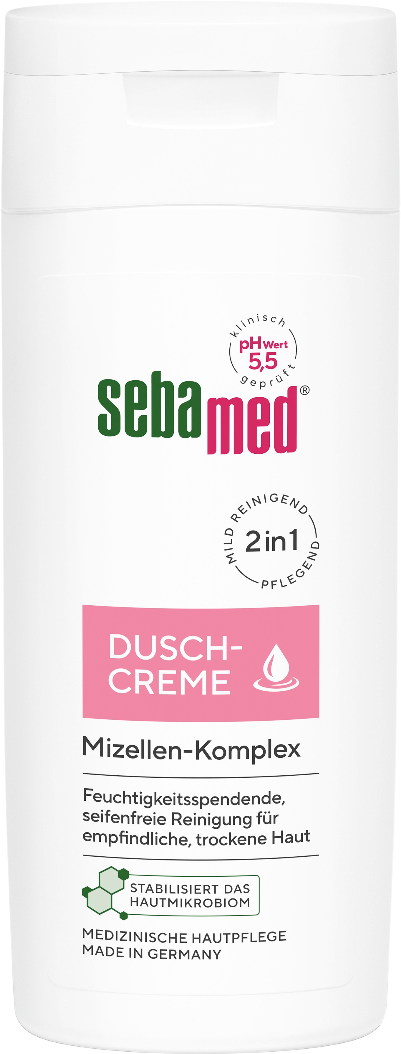 Reinig en verzorg je gevoelige en droge huid op milde wijze en geniet van een aangename douche-ervaring met sebamed Douchecrème. Een micellair complex reinigt de huid op milde wijze, terwijl een natuurlijke pH van 5,5 de weerstand van de huid tegen omgevingsinvloeden, uitdroging en ziekteverwekkers kan verhogen. Plantaardige lipiden, onverzadigde vetzuren en een biologisch actieve bescherming met natuurlijke chitine kunnen ook helpen om vocht lang in de huid op te slaan en de huid zacht aan te laten voelen.